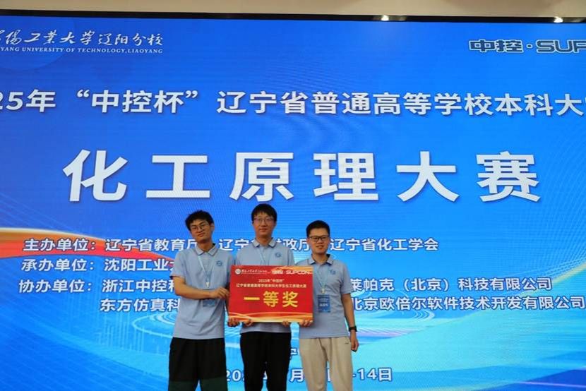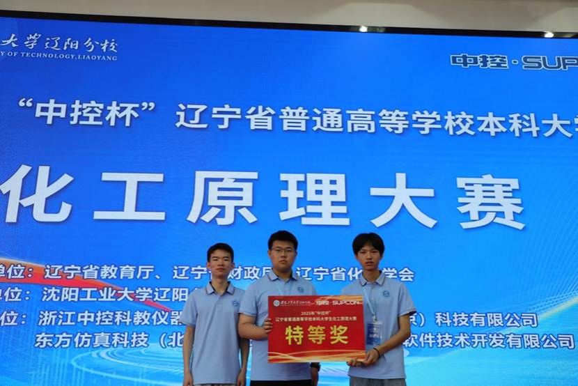 7月11至14日,由辽宁省教育厅、辽宁省财政厅和辽宁省化工学会主办,沈阳工业大学辽阳分校承办的2025年辽宁省普通高等学校本科生大学生化工原理大赛在辽宁辽阳成功举办。我校化工学院选派的6名同学参加了比赛,其中A队(杨亦松、王诸岑、郭健扬)获得特等奖,B队(袁振凯、高晨军、欧岩)获得一等奖,这是我校学子第八次蝉联该项赛事特等奖。