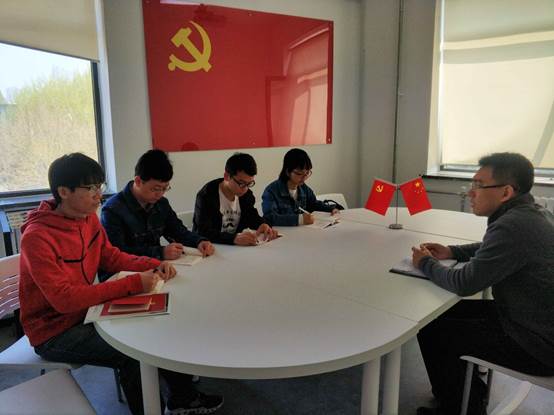 4月26日上午,为了进一步的深化思想交流,互相促进思想提升,Beat365官方网站党总支组织了4名发展对象开展小组讨论会,学院组织员孙挺老师主持讨论会。会上,大家结合自身学习情况和当前热点事件,热烈讨论了如何深刻体会增强“四个意识”的内涵和意义,按照“四讲四有”的标准,力争做“政治合格、执行纪律合格、品德合格、发挥作用合格”的共产党员,进一步巩固了此次发展对象培训的成果。