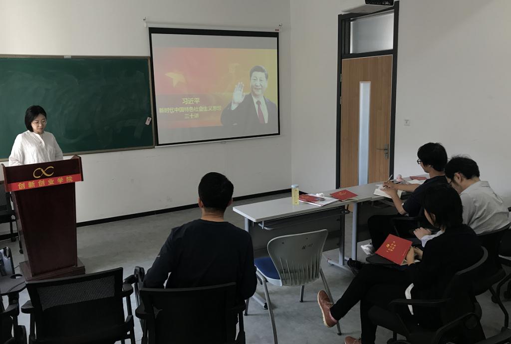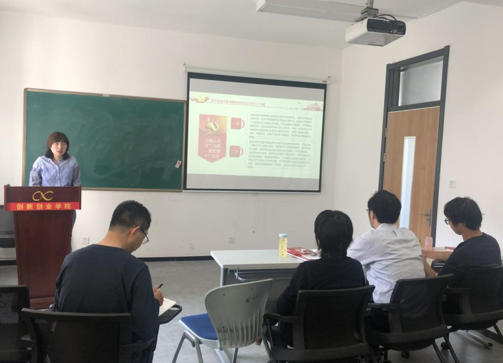 其中,支部书记张崴老师就习近平总书记《关于坚持和发展中国特色社会主义的几个问题》进行了专题讲解;陈奡册老师结合“美丽中国”专题,就“习近平三十讲”相关内容进行了专题报告。