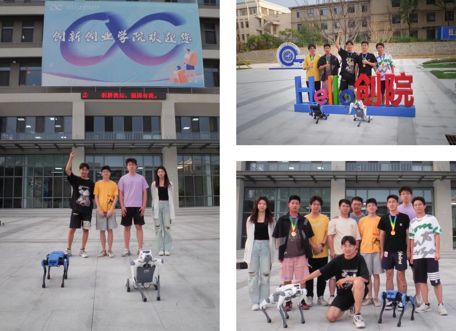 在中国高校智能机器人创意大赛中,余昕卓、李光省、武钰和韩京廷等在机器狗赛道荣获冠军,这是我校第一次在该赛道获得国家级一等奖;董炳成、马恩琦和裴健淞等组队的作品“六足家庭陪护机器人” 获得国家级二等奖。在睿抗机器人开发者大赛中,李光省、许文博、谢鸿宇、蔡梦周和麻嘉航等组队的参赛作品通过融合深度相机与IMU数据,完成机器狗的巡检、避障和越障任务,并自制机械臂完美完成附加赛的积木块推倒任务,以全场唯一满分获得冠军。这些成果标志着人工智能实践班在仿生机器人竞赛方面取得了重要突破。
