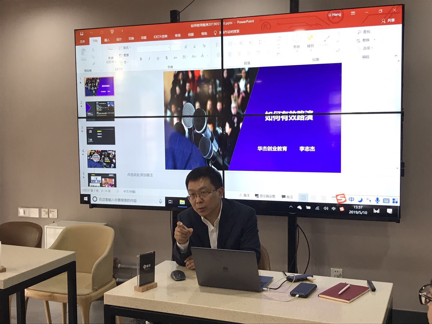 2019年5月10日,北京华杰创业教育科技有限公司创始人李志杰先生受邀莅临我校,在π咖啡路演厅为我校大学生创新创业项目进行现场辅导,并带来了题为“如何有效进行项目路演”的精彩讲座。